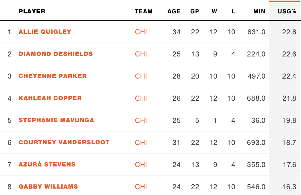 While Parker’s 23.0 usage would’ve been tops on the ball-sharing Chicago Sky, it only ranked 25th in the W last season. Three players maintained usage rates over 22 last season for the Sky, so they’re not bringing in a ball stopper.