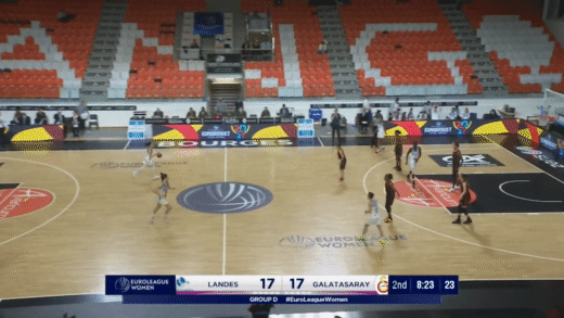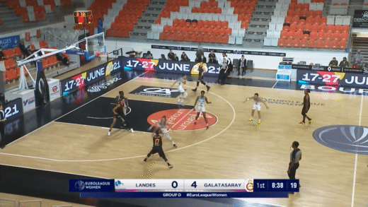 Luckily, Mercedes Russell looks up for the task. Mercedes has shown a lot of promise defensively over her young career, and showed solid defensive efficiency last year, allowing just 36 points on the 49 man-to-man possessions, putting her toward the top of the league in overall defense—in the 88th percentile, per Synergy. While this may be small sample size theater, Russell has backed up these numbers by playing some really nice looking defense for Galatasaray. She’s averaged a solid one steal per game over EuroLeague play, but, even more importantly, has established a strong post presence, forcing mistakes and preventing buckets. Just look at this play, where Russell establishes firm post position early, defends actively with her feet, and is able to force Basket Landes forward Abby Gaye to take—and miss—a worse shot.