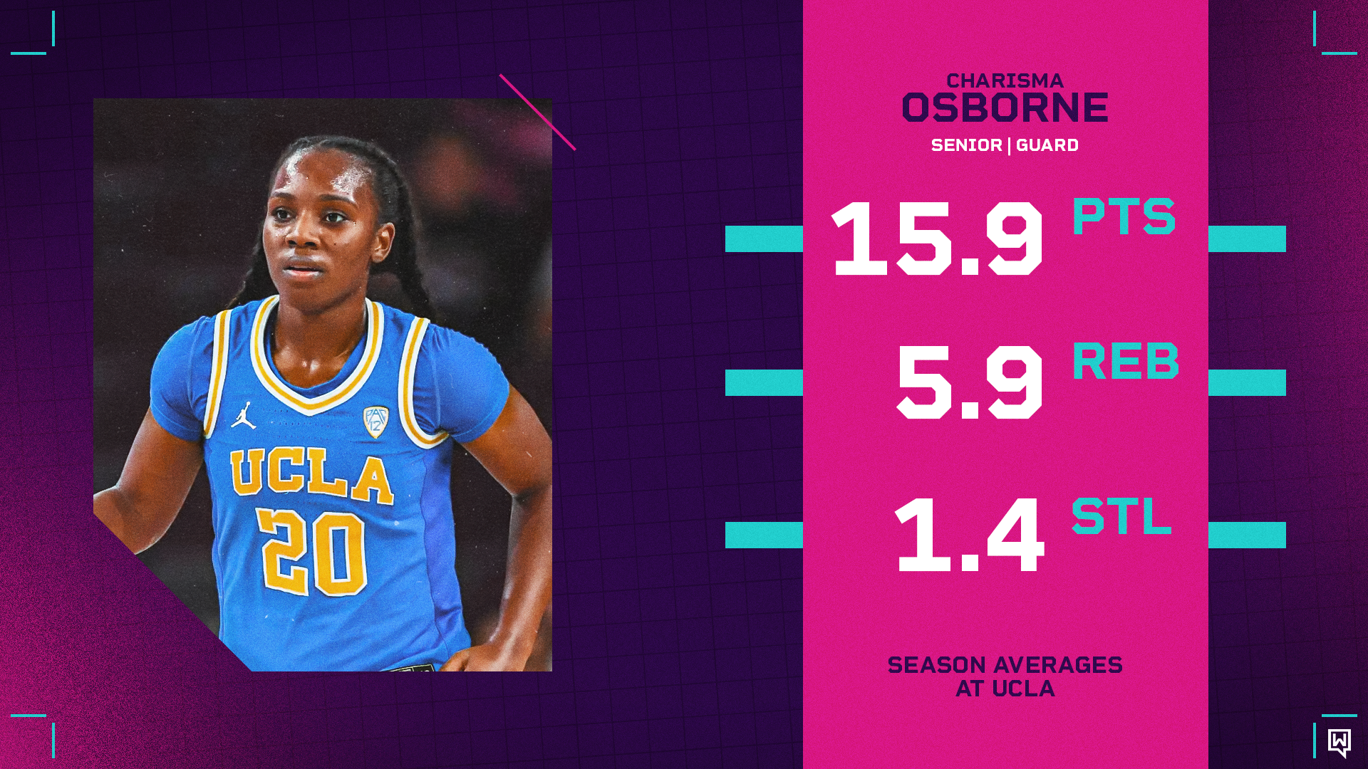 Players who can get a bucket at any time and contribute in a number of other areas always make good pros. Per Her Hoop Stats, Osborne ranked in the 91st percentile of Division 1 hoopers in assist percentage as a sophomore and junior, and in the 83rd percentile as a senior. Osborne is an unselfish number one option; she has the ability to rack up points, but she’d often rather facilitate for her teammates. She doesn’t shy from dirty work; she’s ranked in the 80th percentile or higher in rebounds all four years at UCLA. Osborne brings it defensively as well. She’s averaged at least 1.4 SPG for her entire college career. There simply aren’t many things Osborne doesn’t do well.