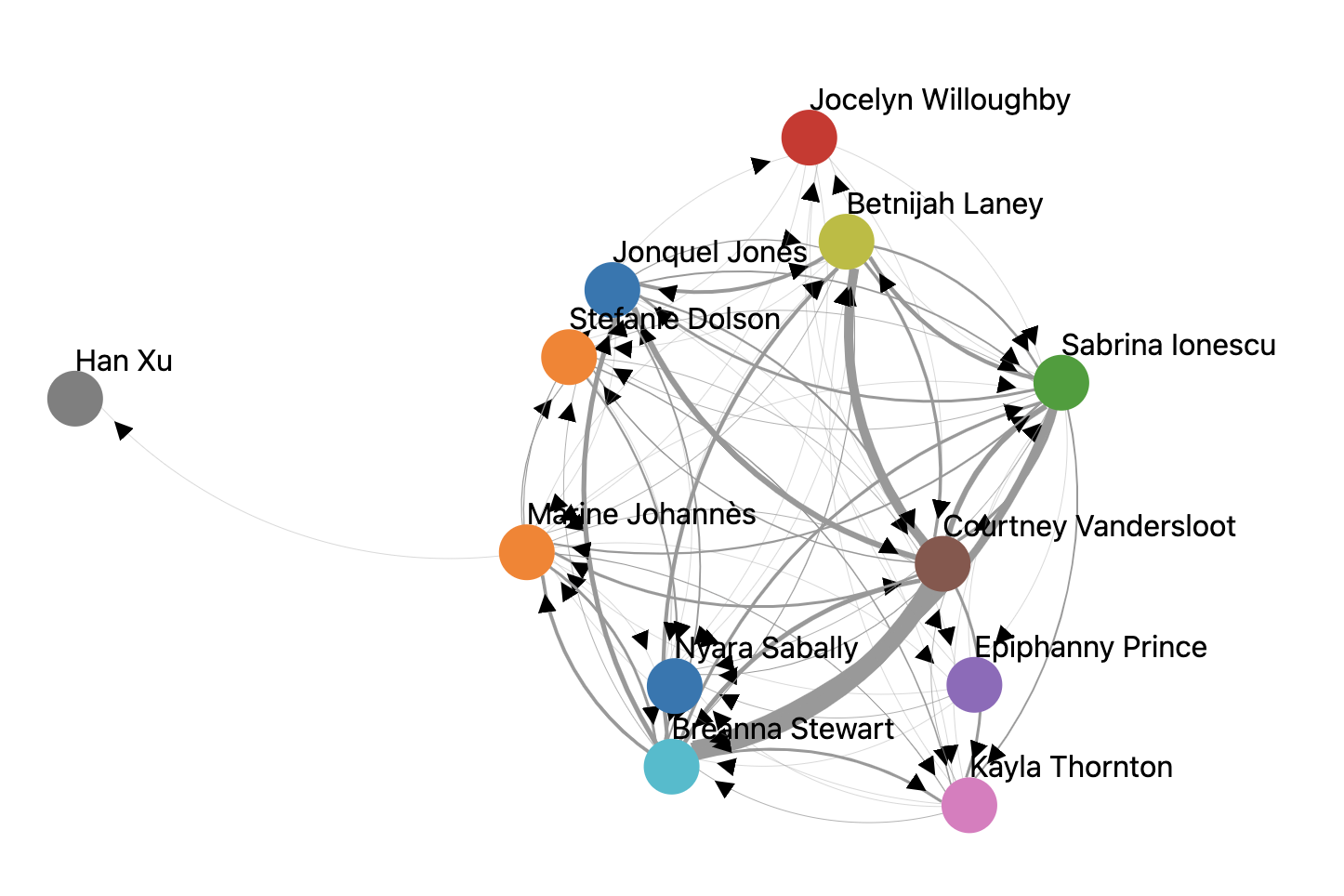 Vandersloot finds herself at the center of the web in PBP Stats’ assist network graphic, providing at least 15 helpers to each of the other four starters on the court. Across the team’s first 16 games, she’s already found Stewart for 53 buckets, generating 118 points. And as for Stewart, her current 23.3 points per game (PPG) average would be a career best, and her 61.6 true shooting percentage would be the second-highest mark, trailing just her 2018 MVP season.