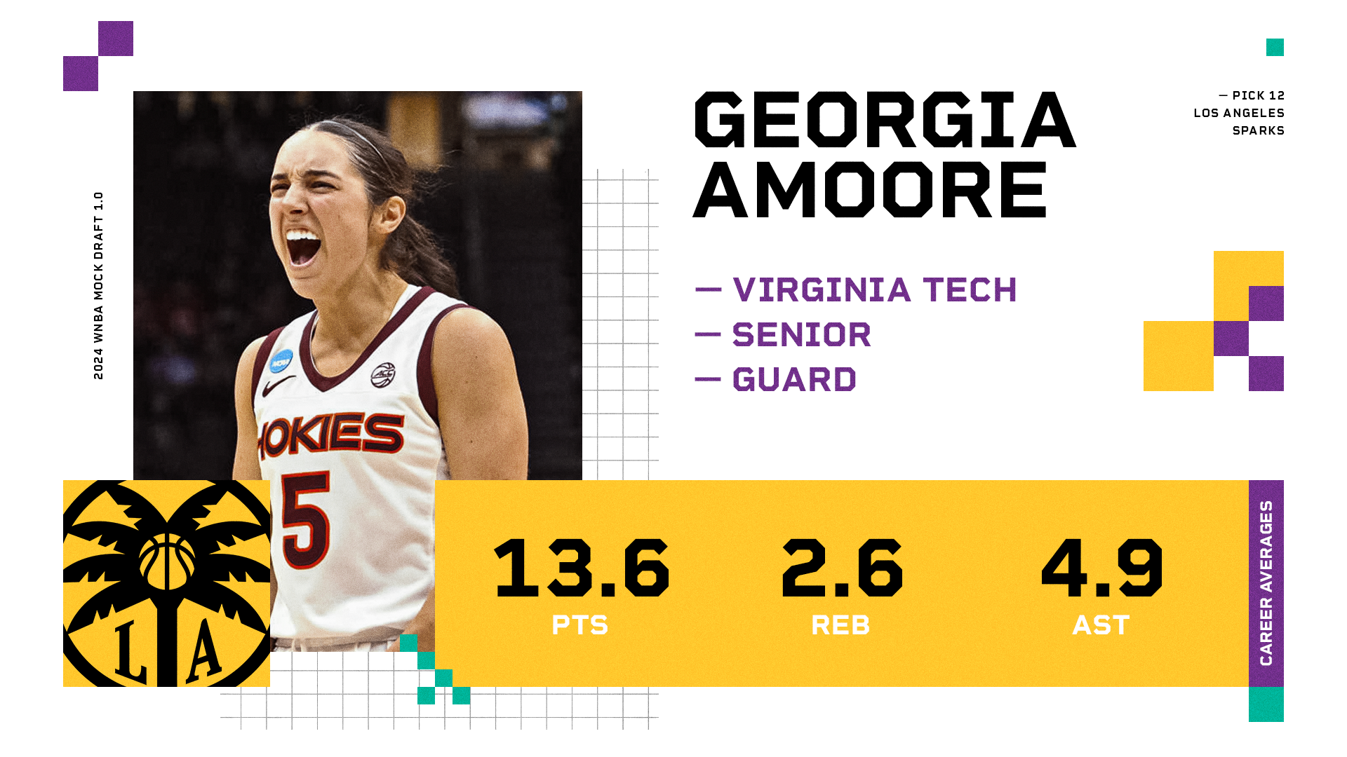 12. Los Angeles Sparks (from LV) — Georgia Amoore, Guard, Virginia Tech