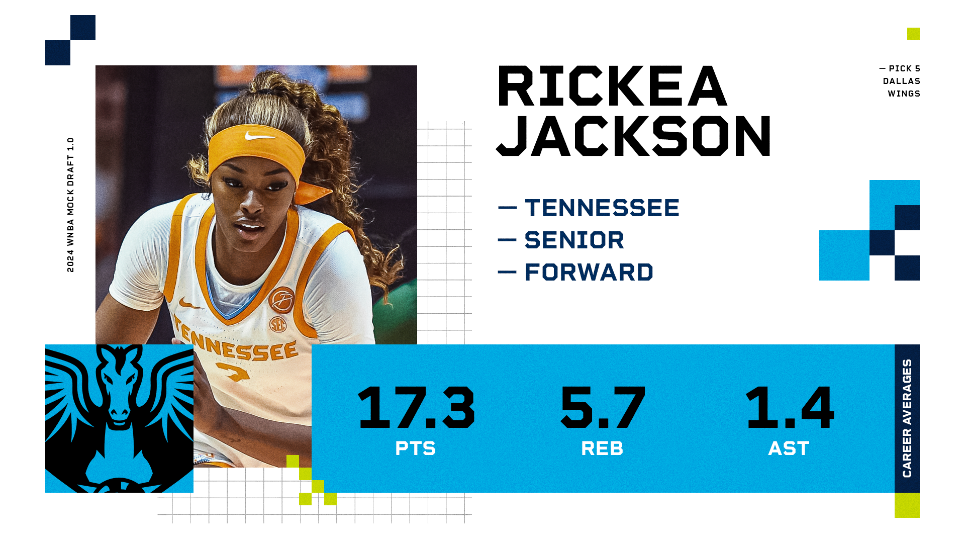 5. Dallas Wings (via CHI) — Rickea Jackson, Forward, Tennessee