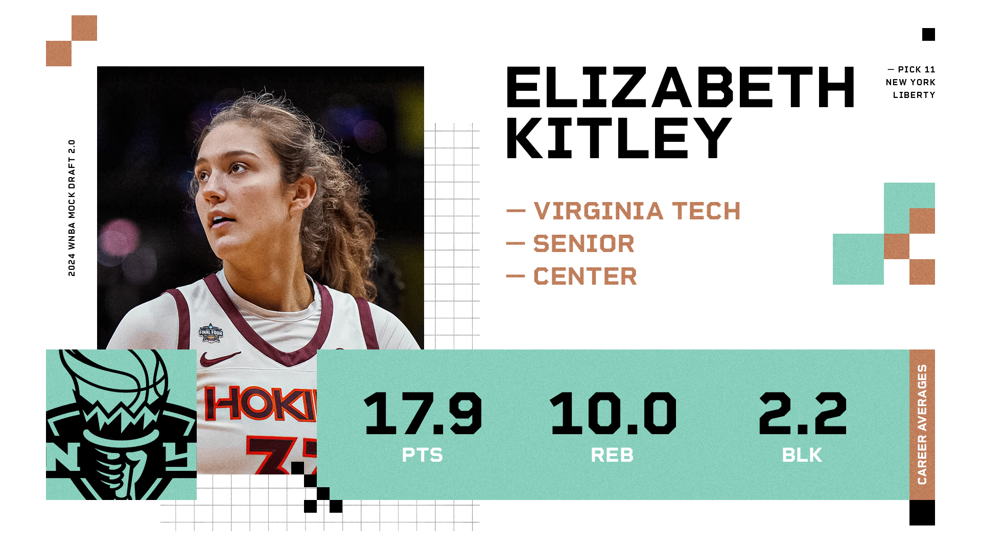 If Liz Kitley were somehow available at No. 11, what a steal for the Liberty. Kitley was just named three-time ACC Player of the Year and is one of the most dominant and productive post players in the country. Kitley is efficient around the rim to 17 feet, has a rare skill set with her footwork and ability to fade away and create separation on her shot, and rebounds the ball at an elite rate. Despite her unfortunate injury keeping her out of the ACC Tournament and future unknown at this time, Kitley’s overall skill with her size makes her a viable option for the future.
