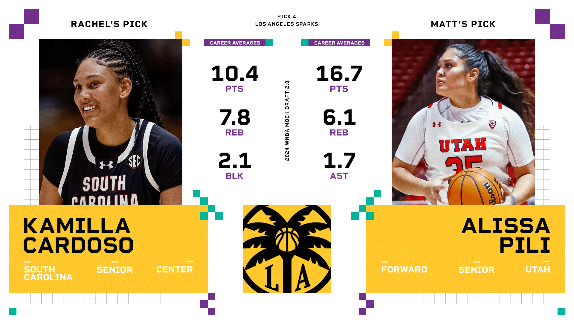 You didn’t expect me and Rachel to agree on every pick, did you? Now that LA has found its foundational big, it needs to fill out its backcourt. A two-guard with shooting is a safe bet, and the best on the board is Alissa Pili. My love for her game is no secret, as she can get her shot from just about anywhere on the court. She’s experienced and polished, and for a team like LA who will want to rebuild quickly, Pili is a wise choice alongside Brink to get that off on the right foot.