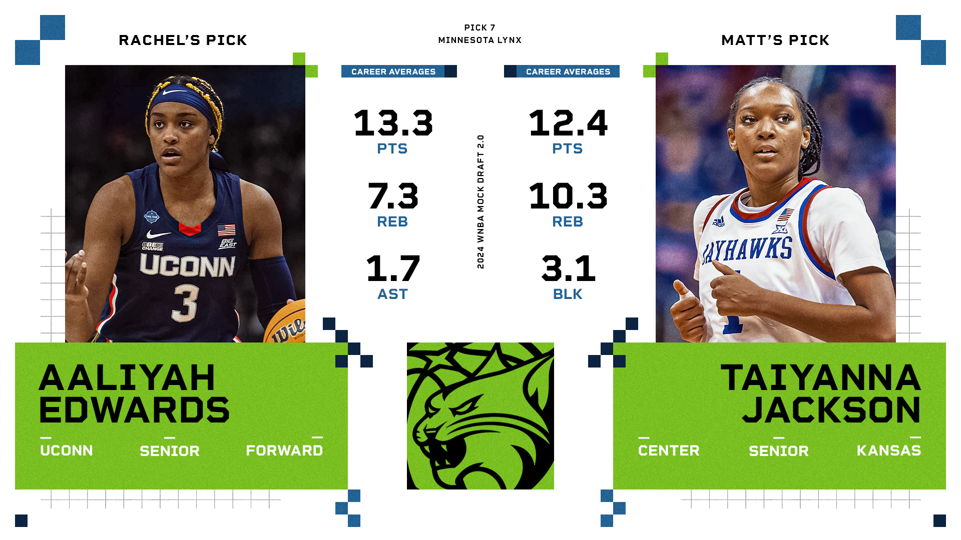 Minnesota has an opportunity to strengthen and deepen its post presence with this pick, and Aaliyah Edwards is one of the top post players in this draft class with her efficiency and shot-making ability. Edwards is tough. She understands her assignments and rebounds the ball as well as anyone in the country. She has really evolved into a well-rounded player capable of helping a lot of teams in this upcoming draft class.