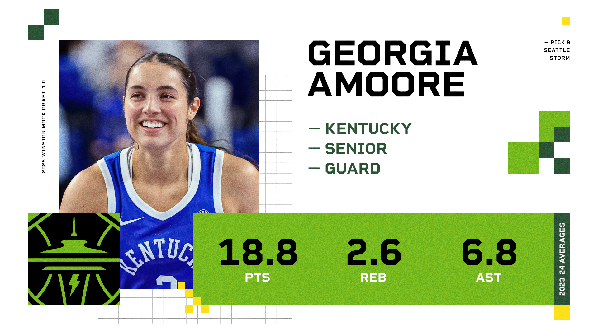 If Amoore has the outstanding curtain call of a college career many predict, she may be the exact type of player the Valkyries would want to begin their franchise. If not, and she falls to the Storm, it would be a terrific pickup.